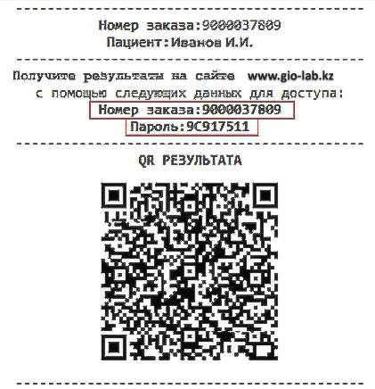 Для того что бы получить результаты анализов Вам необходимо ввести данные в поля «Номер заявки» и «Пароль». Эти данные находятся на фискальном чеке, который Вам выдали в нашем процедурном кабинете. Так же вы можете получить результаты, отсканировав QR РЕЗУЛЬТАТА при помощи программы установленной на вашем смартфоне.